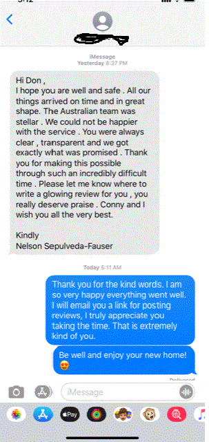 I was so very pleased with everything – from my interaction with you, to how quickly Moving Star was able to evaluate and pick up my “stuff”, to Sonigo and their delivery team. Couldn’t have gone better. Everyone in this chain was as professional as one could ask for and I felt that you treated my goods as though they were your own. I’ve posted my thoughts on every FB page I can find that deals with people thinking about making Aliyah here in Israel or actually moving anywhere in the USA or the world , Please feel free to use this email on your website. It’s not often lately (well in many years) that I’ve been able to rave about a service provider.